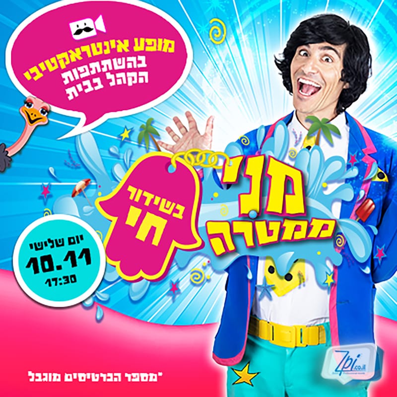 קומדי בר - מני ממטרה - תופעת הצחוק של המדינה ! להלן הפרטים על המופע מני ממטרה בזום: במופע בשידורי חי עם כל השירים, הקטעים המצחיקים והדמויות האהובות שף ממטר, מני יאנג ובתיה החברה הכי טובה של מני, וכל זה בשיתוף הקהל בבית ! מני יעלה אתכם לשידור ידבר אתכם, יצחיק אתכם ויעשה איתכם חיקויים חדשים ואולי אתם תביאו לו את הרעיון לחיקוי חדש למצעד החיקויים שלוש. בשידור תוכלו לדבר עם בתיה ותהיו חלק בקליפים ובשירים על המסך. מחיר כרטיס: 50 ש"ח .